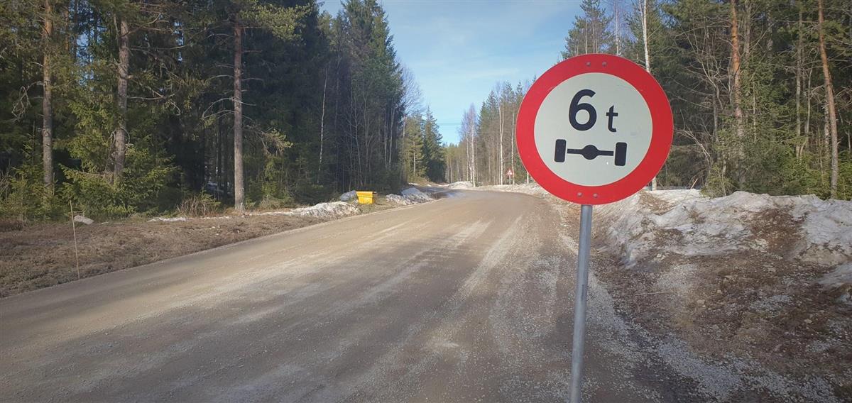 Aksellasten settes ned til 6 tonn på utvalgte veger. Vegene vil bli skiltet med aksellastgrense (skilt 320). Restriksjonene gjelder fra skilt er satt opp og til de blir fjernet.