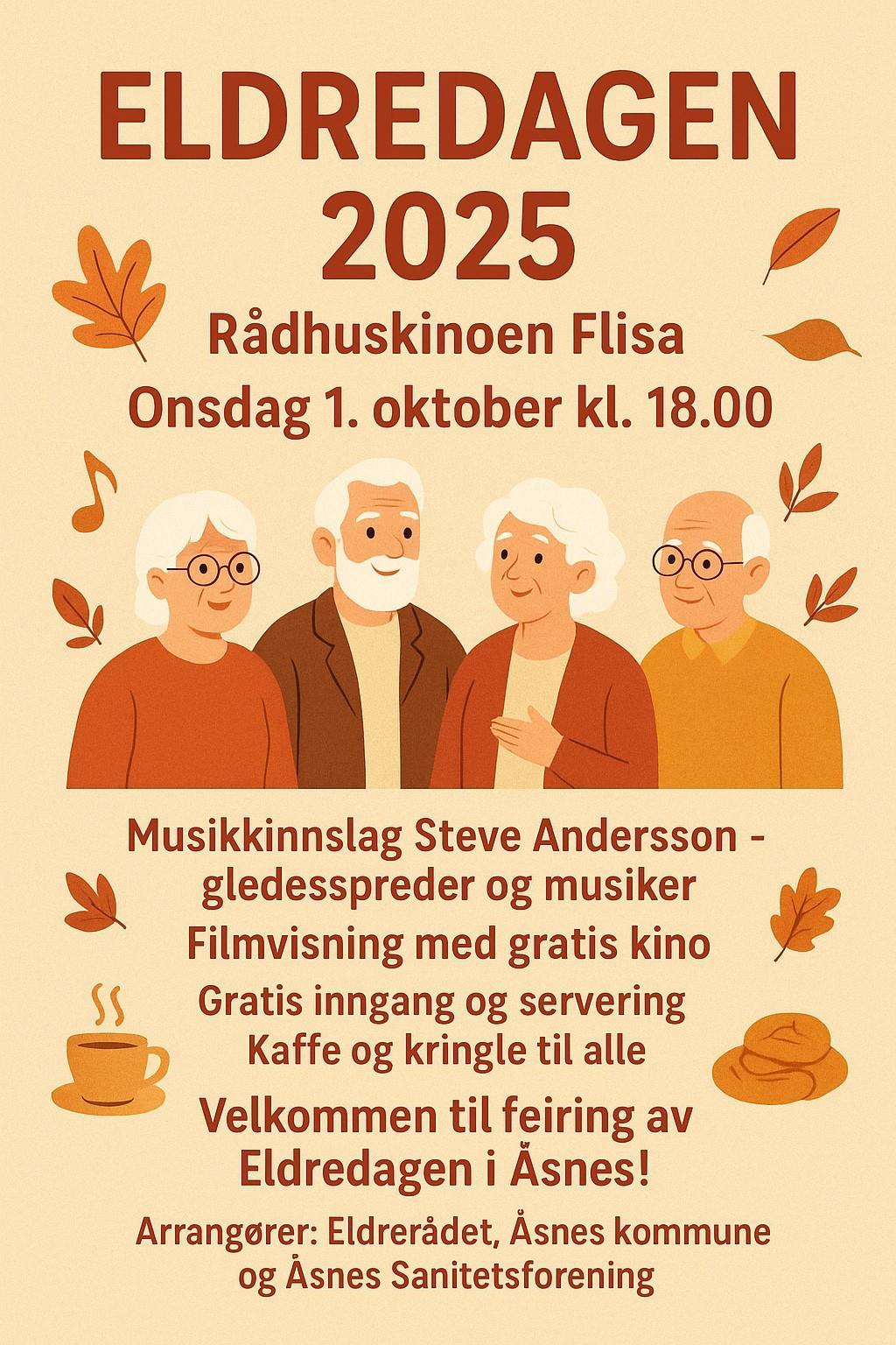 1. oktober er FNs internasjonale dag for eldre, og denne onsdagen feirer vi Eldredagen i Rådhuskinoen kulturhus på Flisa med musikalsk innslag og gratis kino.